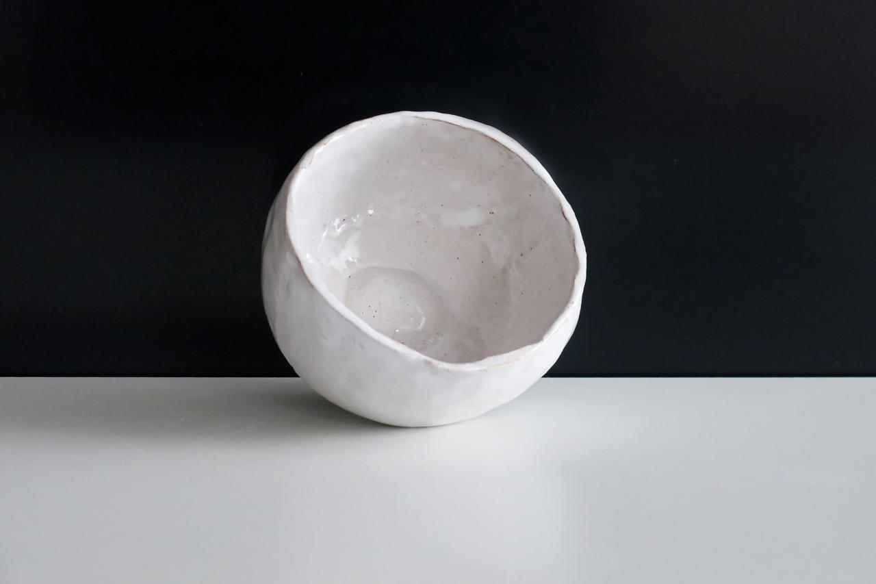 在捏的過程中,看到其他人動作迅速,我心裡一急,結果發現許多錯誤,只好放慢步伐。因為希望碗底能夠順滑而完美,我花了些心思處理。結果翻轉一看,碗內竟然浮現出蛋的形狀,我覺得非常漂亮,因此決定隨其自然,保留這個特色。