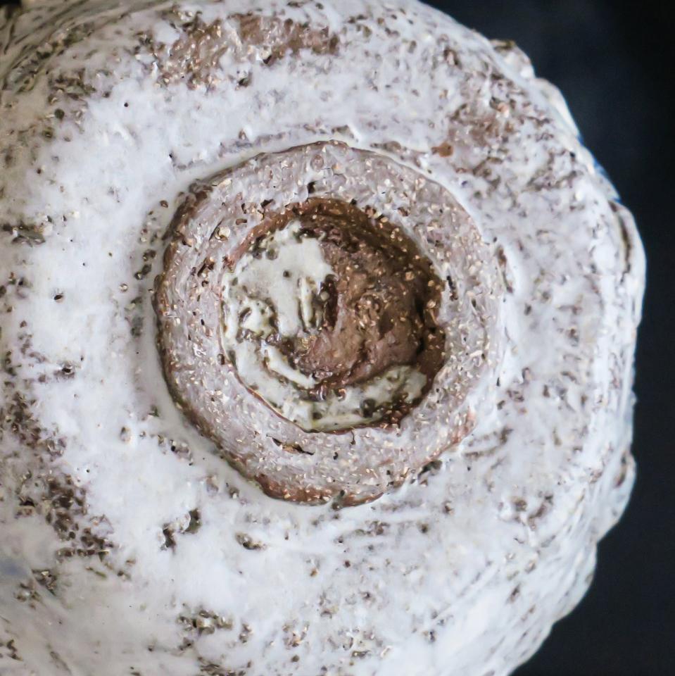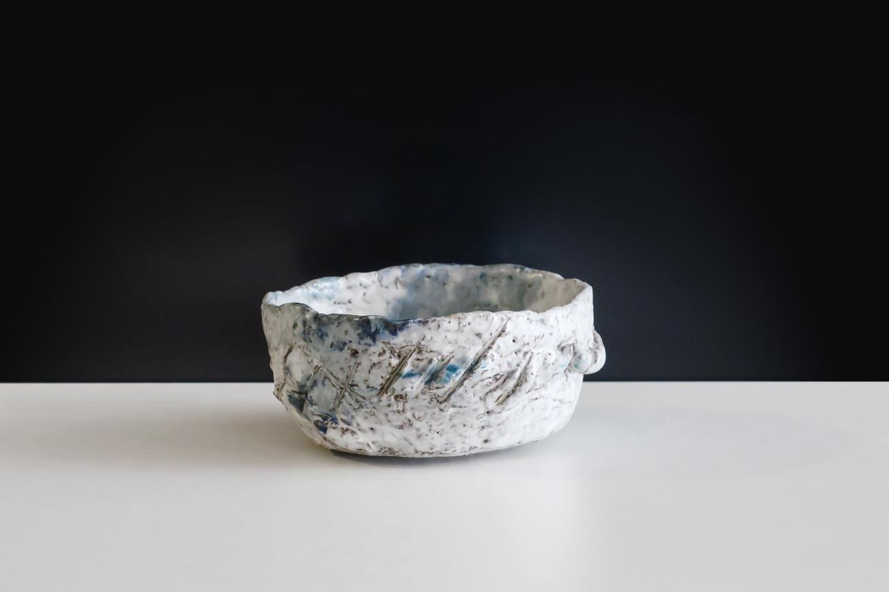 這隻茶碗就是使用了質感比較粗糙的陶泥,還有用木刀刻畫除的紋路,就好比人生,困難之中都有很多機會,就差在有沒有用心去感受。有一些經歷和苦難的人生,雖然粗糙一點,但其實更加立體、精彩。